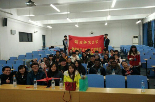 2015年11月15日下午,由看漫画 物理科学与信息工程学院主办的大学生文化交流会在公教楼A103隆重举行。与会人员有看漫画 的数位国际交流生、看漫画 的志愿者们和看漫画 青年志愿者协会内部全体成员。