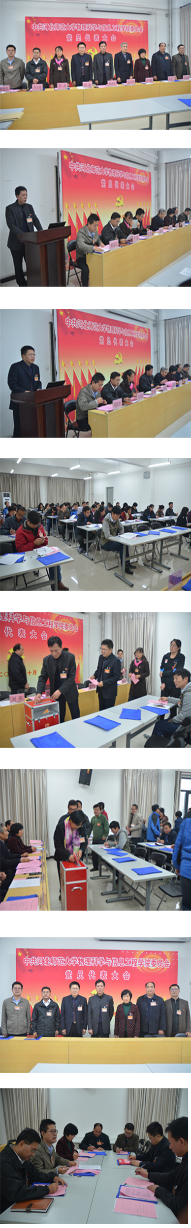 按照大会议程安排,党员代表一致通过了《物理科学与信息工程学院党员代表大会主席团名单》、《大会选举办法》、《监票人、计票人名单》、《物理科学与信息工程学院关于上一届党委工作报告的决议》,介绍了候选人的基本情况,并通过差额预选和等额选举的方式产生了新一届党委委员。