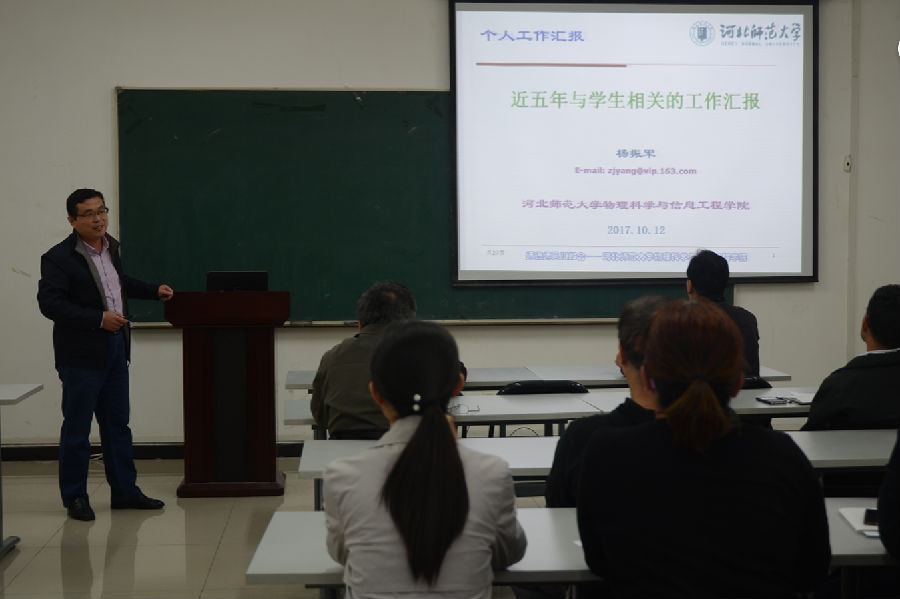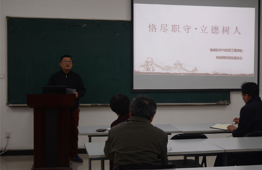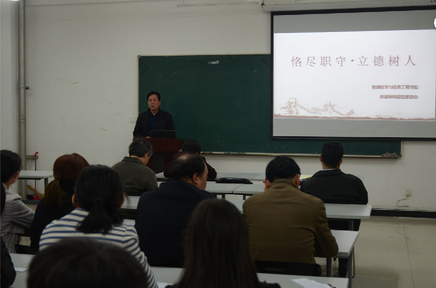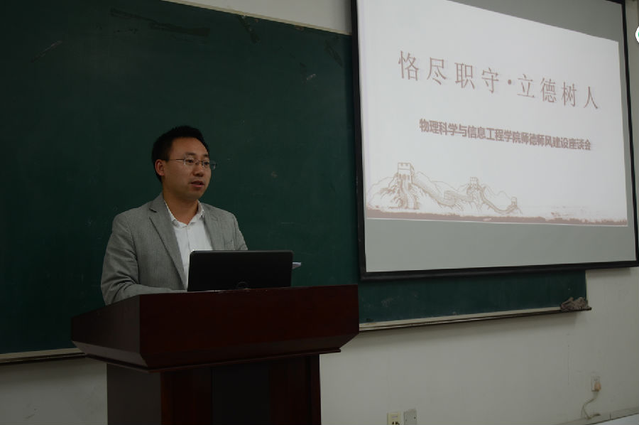 10月12日下午,看漫画 在理科群2-A302教室召开了以“恪尽职守,立德树人”为主题的师德师风建设报告会。院长张书敏主持报告会,宋俊涛、杨振军、康建波三位教师代表发言,全院教职员工参加了报告会。