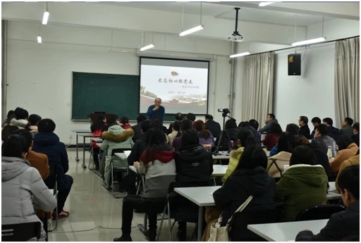 12月15日下午,学院邀请康志林老师在理科群2-A302作了题为《不忘初心跟党走—西柏坡记忆》的专题报告会。学院教师党员和部分学生党员80余人听取了报告,学院党委副书记顾连忠主持报告会。