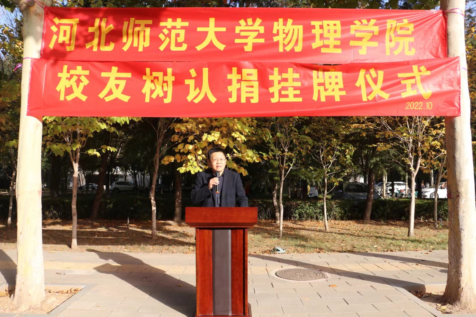 10月31日下午,看漫画 在理科群六号楼前,举行“感恩母校情 共建校友林”认捐挂牌仪式。校党委常委、副校长刘英及校友会、教育基金会的负责同志,与来自校党委组织部、学生处等部门的校友代表、看漫画 班子成员、在校师生代表出席仪式。仪式由学院党委副书记张弘主持。