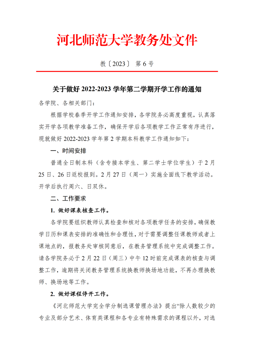 关于做好 2022-2023 学年第二学期开学工作的通知