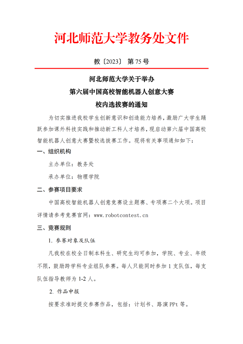 关于第六届中国高校智能机器人创意大赛校选拔赛的通知(教务处)