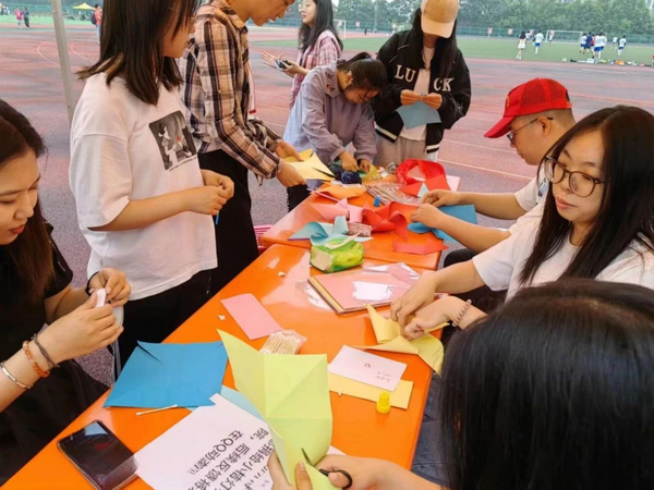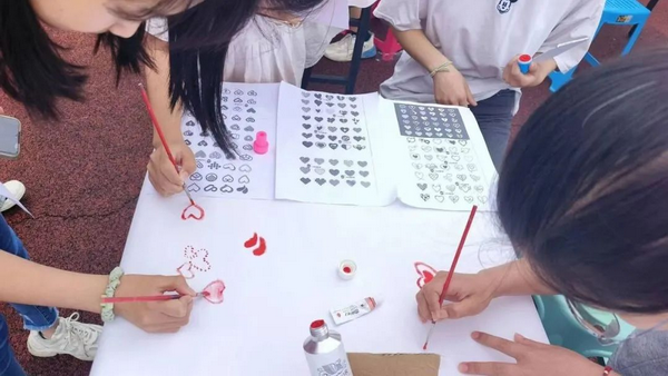 活动开始,同学们有条不紊地进行制作,发挥想象力和创造力进行样式设计、颜色搭配和装饰美化,细心裁剪、小心组装。在同学们灵巧的双手下,传统的折扇被赋予了新的意义,洁白的画布被爱心填满;一个个小风车随风转动,善意与关爱也从手中产生;同时用自己的巧手和浓浓的爱心,把炫彩斑斓的珠串编成了一串串祝福。相信这份真挚的情感将传递到孩子们身边,为他们带来一份收获的喜悦与独特美好的回忆。