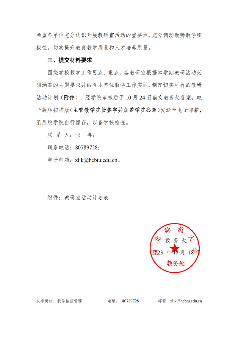 关于组织开展2023-2024学年第一学期教研活动的通知