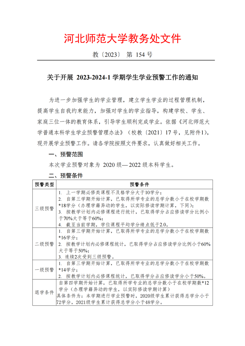 教务处发布--关于2023-2024-1学期开展学业预警工作的通知