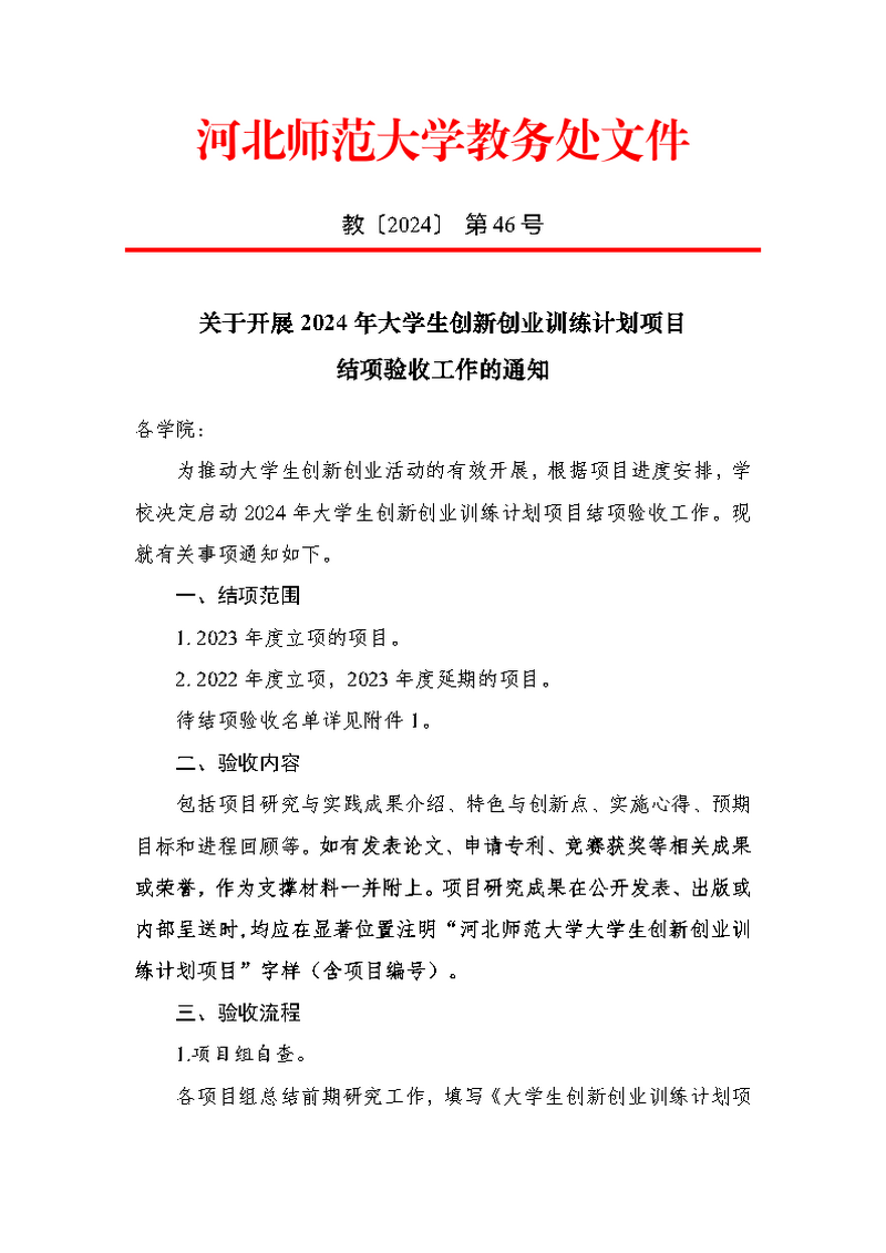 关于开展2024年大学生创新创业训练计划项目结项验收工作的通知