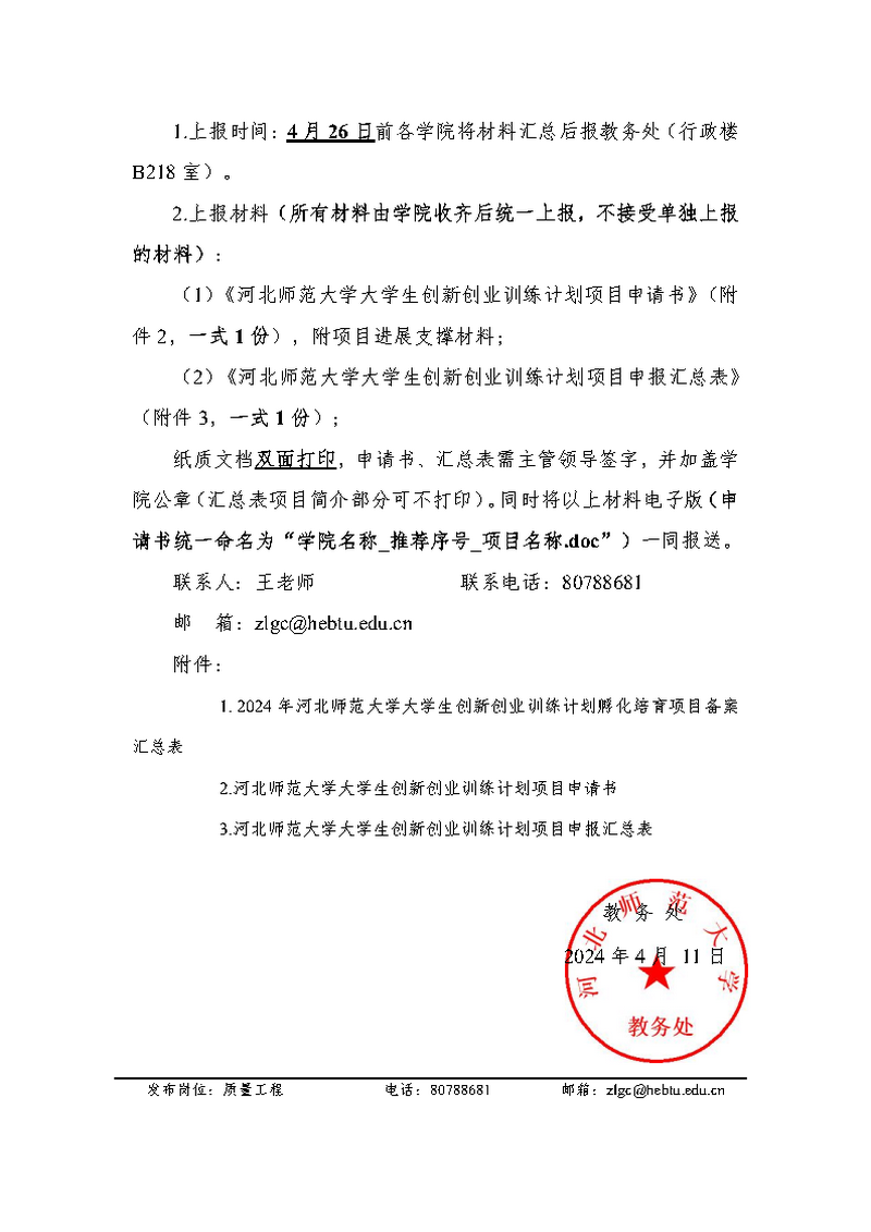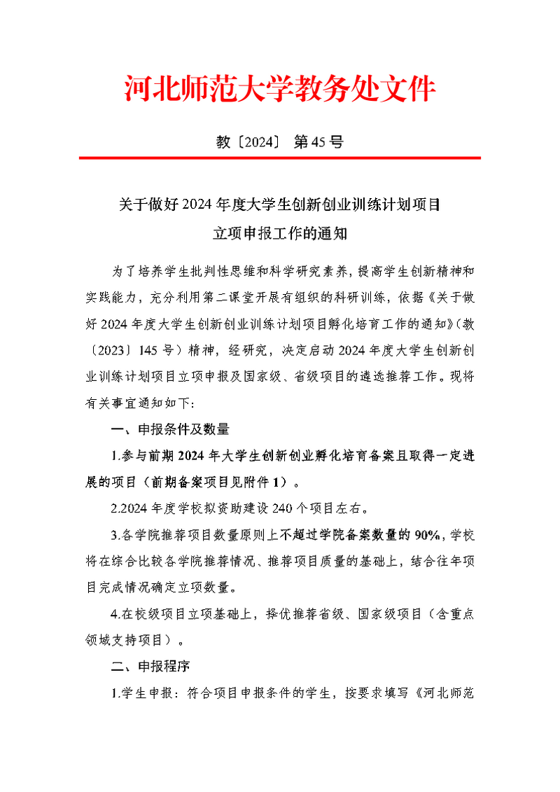 关于做好2024年度大学生创新创业训练计划项目立项申报的通知