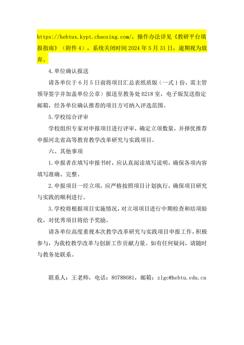 关于组织开展2024年度教学改革研究项目立项申报工作的通知