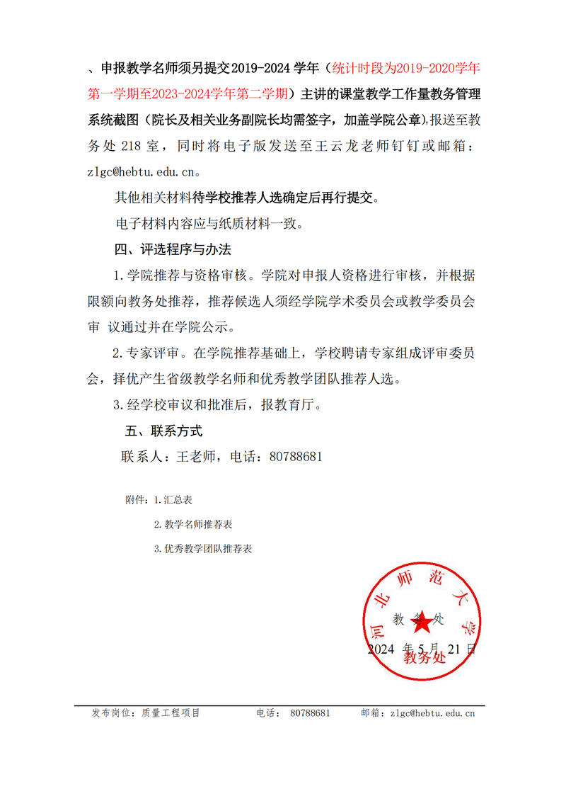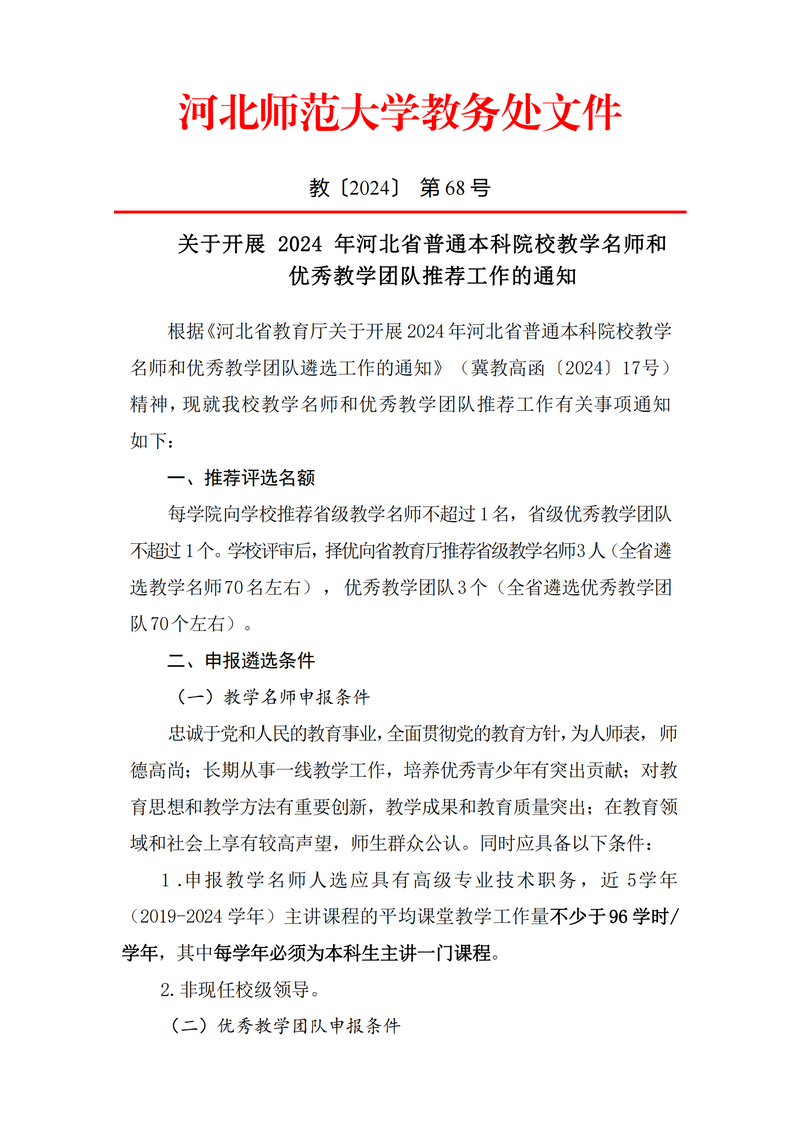 关于开展2024年河北省普通本科院校教学名师和优秀教学团队推荐工作的通知