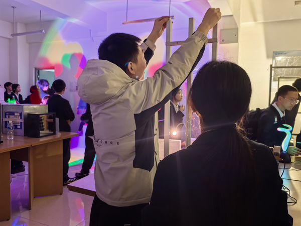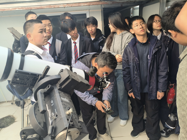 开幕式动员会上,副院长宋俊涛介绍了看漫画 实验室开放日的工作部署以及活动对扩大看漫画 物理学科社会影响力的重要意义,副书记张弘强调实验室开放日不仅能够激发中学生学习物理的兴趣,同时可以提升学生志愿者的专业能力和综合素质,要求所有工作人员和志愿者以饱满的热情投入到开放日活动中,服务好研学的中学生。11月9日,北京外国语大学附属石家庄外国语学校初二年级330余名学生进校研学,有序参观了物理实验中心的天文实验室、物理演示实验室、博物馆、图书馆等。中学生在许多有趣的物理现象前驻步、体验,并在志愿者的精彩讲解下引发进一步思考和提问。