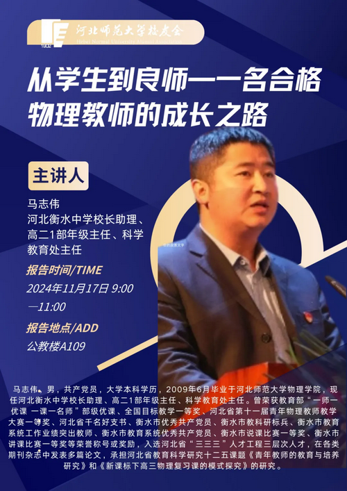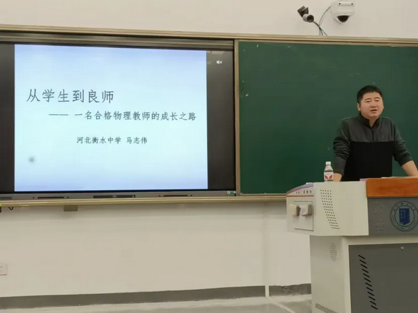 再到衡水中学的学习和个人奋斗历程,他从自身职业发展的经验出发,对如何成长为一名合格的中学物理教师,如何加强自身的师德建设,以及如何在实习和工作中做好教书和育人的教师角色诠释给予充分又有益的建议。最后的现场提问环节,马志伟就如何与家长沟通,加强班级学风建设,班主任应如何指导学生平衡各科学习的精力分配等问题给予具体的解答!!