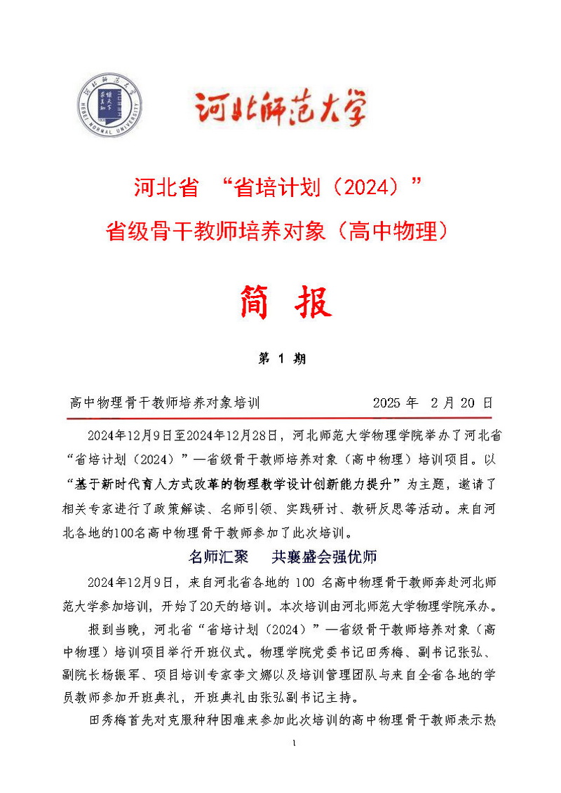 “省培计划(2024)”省级骨干教师培养对象(高中物理)简 报