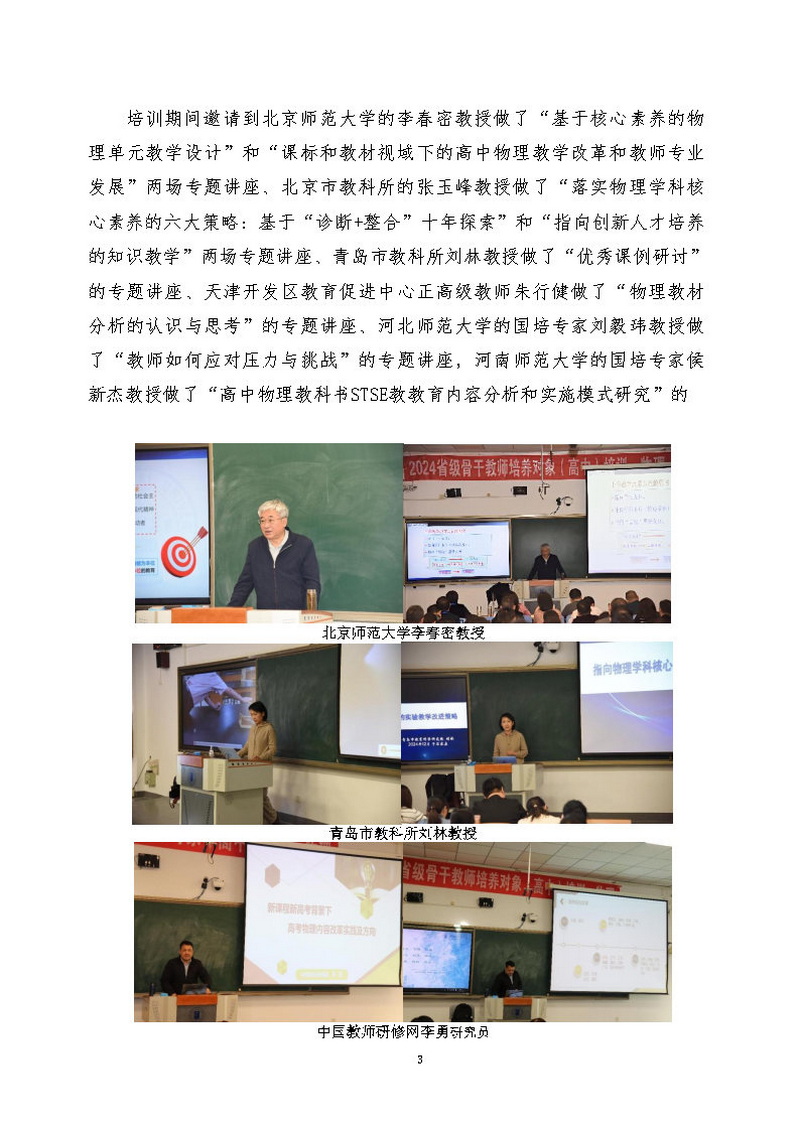 “省培计划(2024)”高中骨干教师三年递进式培训项目(物理)简 报