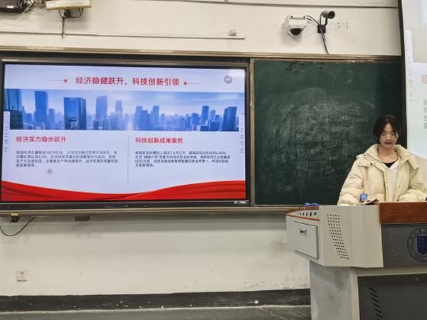 随后,由各班团支部代表组成的“二十届四中全会精神研究小组”作专题汇报。汇报系统回顾了“十四五”时期我国在经济、科技、民生、生态、安全、文化等领域的辉煌成就,明确我国已迈入高质量发展新阶段;同时围绕科技创新新部署、党和国家的要求、“十五五”民生规划等维度,解读未来五年的发展路径与青年担当。